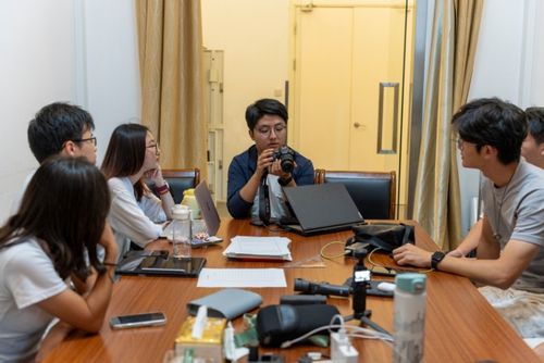 培训伊始,杨浩堉以“如何拍好校史馆场景”为主题,系统讲解了构图原则、光线运用、角度选择及专业摄像设备的操作技巧。他精选多幅优秀摄影作品作为案例,结合现场演示与理论分析,深入浅出地阐释了如何通过调整快门速度、光圈大小、ISO等参数克服馆内复杂光线环境,实时捕捉来宾专注聆听的神情、讲解员生动的讲述瞬间以及双方自然的互动交流,确保画面鲜活生动。讲解过程中,杨老师还现场指导队员们操作设备进行即时练习。