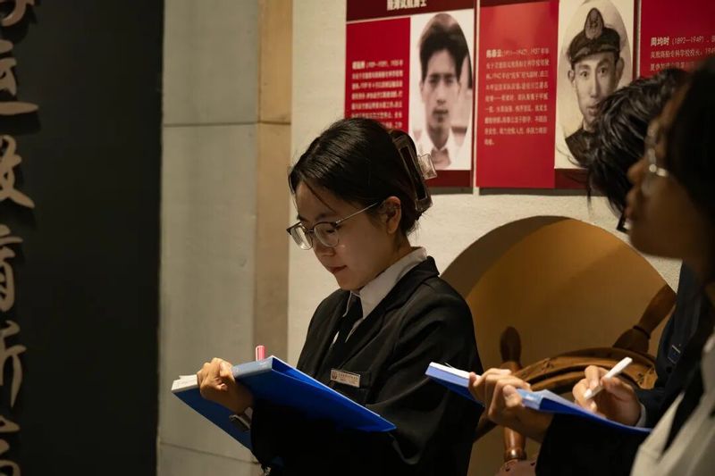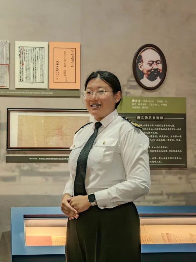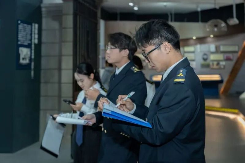 本次考核采用“车轮战+随机叫停”模式,既全面检验成员校史知识功底,更着力培养临场应变能力。考核设置特色模拟场景,要求讲解员以“原上海海运学院外语系毕业生”来馆参观为模拟场景,根据校友身份精准调整讲解策略,用专业且富感染力的语言,讲述校史的发展脉络、校友事迹等特色内容,让讲解更具针对性。